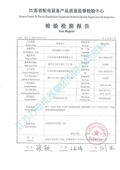節能耐腐蝕鋼制電纜橋架(以下簡稱節能橋架)是江蘇萬奇電器集團有限公司(原鎮江萬奇電器設備有限公司)自主創新研制開發的新一代具有高科技含量的產品。該產品具有高強度結構、耐腐蝕、散熱節能等特性,產品及工藝先后獲得國家知識產權局發明、實用新型和外觀設計二十項專利證書,通過江蘇省科技成果鑒定,并獲得了江蘇省高新技術產品稱號,被列為省火炬計劃,通過了CQC電纜橋架節能產品認證,被評為國家重點新產品。產品經多年使用實踐,技術先進、質量可靠、穩定,具有較高的經濟效益和社會效益。